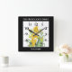 Entworfen auf der Basis meiner Aquarell-Abbildung von gelben Tageslilien. Ich malte sie in George Smiths hübschem Garten in Heslington, York, England. Was für ein schöner Tag! Schöne, helle und lebendige Blume im Sommergarten mit zarten gelben Blüten und frischem grünem Blattwerk. Das Design hat einen schwarzen quadratischen Rahmen auf der Außenseite mit Texten, die oben und unten personalisiert werden können. Es wird eine schöne Ergänzung zu Ihrer Wohngestaltung oder als Hauswärmespende.