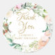 Sweet Summer Rose goldene Drehbuch Baby sprinkle danke, klassische Rundaufkleber. Entworfen, um mit unseren Sweet Summer Rose goldene Skript Baby Sprinkle Sammlung zu koordinieren. Ein elegantes Blumendesign mit goldfarbenem Text, gerahmt von einer Garage mit sommerlichen Rose. Ideal zum Versiegeln von Einladungsumschlägen oder Gastgeschenken.