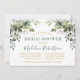Die moderne Elegant Watercolor Botanical Greenery Bridal Shower Invitation Card beinhaltet Eukalyptus-Blätter, grünes botanisches Blattwerk, staubblaue Blätter und andere schöne botanische Pflanzen. Trendy Kalligrafie Script. Gold Text. Legen Sie die Farbe grün zurück.