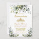 Die moderne Elegant Watercolor Botanische Grüne Wedding Quinceañera Invitation Card beinhaltet Eukalyptus-Blätter, grünes botanisches Blattwerk, staubblaue Blätter und andere schöne botanische Pflanzen.