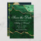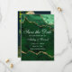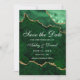 Moderne elegante Wasserfarben Smaragdgrün und goldfarbene Marmorwurzel Agate Geode Save the Date Karte - Foto Zurück