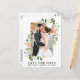 Moderne Aquarellfarbe Eukalyptus Grüne Pfirsichfarben Rose Rahmen Save the Date Foto Verlobung Ankündigung Postcard - Goldrahmen