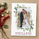Die elegante Watercolor Winter Greenery Verheiratet & Merry Wedding Foto New Holiday Postcard beinhaltet Eukalyptus-Blätter und rote Heilige Beeren.