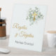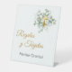 Direkte Gäste mit Eleganz mit diesem Taufschild. Dieses Schild ist mit fesselnden Aquarellgrün-Blätter und einem goldenen Kreuz geschmückt und führt die Gäste zu dem dafür vorgesehenen Bereich für Geschenke und Karten. Dirigent a los invitados con elegancia utilizando este letrero de pedestal para el bautizo. Decorado con cautivadoras hojas verdes de acuarela y una cruz dorada, este letrero guía a los invitados hacia el área designada para los regalos y las tarjetas.