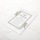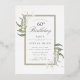 Elegante botanische Grün Geburtstagseinladung mit Aquarellblättern und Goldfolie-Schimmer. Farben in staubblauen und beigen Tönen.