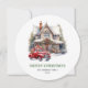 Aquarellhaus Roter LKW Frohe Weihnachtskarte Feiertagskarte