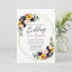 Moderne Kalligraphie Script, Elegant Watercolor Burgundy Marsala Floral Geometric Goldrahmen Hochzeitsempfehlung Einladung umfasst burgundische Rose, rosa Rosen, rote Blume, blaue Blumen, Sonnenblumen, eukalyptus Blätter und botanische Vegetation.