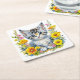 Aquarellkätzchen in Gelb und Rosa Blume Rechteckiger Pappuntersetzer