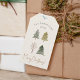 Ein elegantes Geschenkschild mit Aquarell, vier Weihnachtskiefern und einem hübschen Foto im Hintergrund. Ideal für die Weihnachtsverpackung.