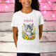 Ai Art zeigt ein niedliches, grau gestreiftes Katzenkätzchen, das in einem Haufen hübscher gelber, rosa und blauer Blumen sitzt. Fügen Sie den Namen Ihres Kindes in den personalisierenden Bereich ein. Hübsche Wandkunst in Aquarelltönen für ein Kinderzimmer oder ein Schlafzimmer.