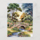 Aquarelllandschaft Grüne Gartenbrücke See Postkarte