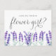 Wirst du meine Blume sein? Frag deinen Freunden und Verwandten, an deiner Hochzeit mit dieser Blumenkarte für das Brautparty teilzunehmen. Es verfügt über Aquarelllavender-Blume. Personalisieren Sie diese durch Hinzufügen von Namen und Nachrichten. Diese lila Blume Girl Angebotskarte ist perfekt für Frühjahr- und Winterhochzeiten.