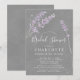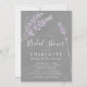 Wasserfarbener Sommerlavender mit Aquarell und grauem Hintergrund. Elegante Sommer Blumendusche Einladung.