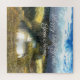 Künstler von Zolotareva Wasserfarbe auf Seide - Original Hand Wasserfarbe gemalt Kunst; die umliegenden Landschaften sind surreal in ihrer Schönheit. Wasser im See reflektiert den kalten Herbsthimmel. Früher gab es große Bäume um den Teich.Man kann Namen oder Text hinzufügen. Vorlage personalisieren.