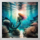 Aquarellmalerei mit der Meerjungfrau 1:1 Poster
