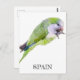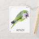 Malerei von wildem grünen Papagei auf dem grünen Busch in einem Park in Spanien. Auch bekannt als Mönchssittich oder Quakerpapagei