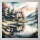Aquarellmalerei des Landschaftsbildes Seehaus. Das Seitenverhältnis beträgt 1:1. Es wurde als 20"x20" 16"x16" 12"x12" gedruckt