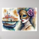 Aquarellmalerei Venezianische Maske der Frau VI Poster