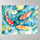 Aquarellmalerei von Koi im Lily Pond Poster