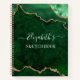 Modernes, elegantes Watercolor Green und Gold Marble Agate Geode Sketchbook Notebook personalisiert mit Ihrem Namen in trendiger Schrift.