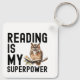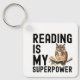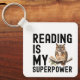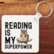 Aquarellblume Lesewurm Lesen Sprichwort Schlüsselanhänger. Illustration einer Uhu in Aquarellen mit einem Buch und dem Zitat "Lesen ist meine Supermacht."