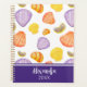 Schreiben Sie Ihre wöchentlichen und monatlichen Tore für das Jahr in diesem Planer mit einem farbenfrohen Cover mit einem Muster von roten, gelben und violetten Muscheln in Aquarell. Personalisieren Sie es, indem Sie das Jahr, Ihren Namen oder Monogramm hinzufügen, oder anpassen Sie es als Geschenk an einen Strand liebenden Freund.