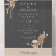 Das Ganze in einer dreiseitigen Hochzeitseinladung mit einem Bouquet aus pfirsich/beige Aquarellblumen auf grauem Hintergrund in einem modernen oval/oblong Rahmen Hochzeitseinladung, rsvp card und hülle. Die Antwortkarte ist eine perforierte Abreißkarte von rsvp mit detaillierten Wahlmöglichkeiten. Eine moderne, alles in einer Lösung, um zu verhindern, dass die beiliegende rsvp-Karte versehentlich unter den Kühlschrank kommt.