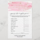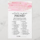 Dieses Spiel in Aquarellfarbe, Rosa und Gold "Raten Sie den richtigen Preis" ist perfekt für eine kleine Dusche. Auf der Vorderseite der Spielekarte steht "raten Sie den richtigen Preis", auf der Rückseite der Karte steht "Was ist in Ihrem Handy?". Das luxuriöse feminine Design besticht durch eine hellrosa Aquarelltextur mit einem Hauch von Imitaten aus goldenen Glitzer-Staub und einem eleganten Kalligraphie-Script-Schriftart. Personalisieren Sie die Vorderseite der Karte mit dem Namen des Mama-to-be- und Baby-Duschdatums. Sie können die Fragen des Spiels personalisieren, indem Sie auf den Button "Anpassen" klicken. Bitte beachten Sie: Dieses Design enthält keinen echten Gold-Glitzer. Es ist eine qualitativ hochwertige Grafik, die wie goldenes Funkeln aussieht.
