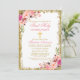 Moderne Elegante Wasserfarbe Rosa Rosa Blütenblüte Erste Heilige Kommunion Einladung umfasst rosa Rosen und Grün. Gold Glitzer Frame. Gold Cross.