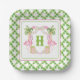 Aquarellpinken Flamingo Monogram Wappen Weihnachte Pappteller