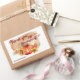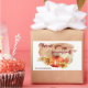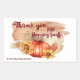 Aquarellkürbis, Sonnenblumen und Herbstblätter auf einer Rose mit goldenen Hintergrund mit Funken. Aufkleber für kleine Unternehmen.