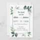 Es ist ein minimalistischer Aquarellrahmen mit einem weißen rechteckigen Zentrum, umgeben von grünen Blätter und zarten weißen Blume. Die Blätter sind in sanften, natürlichen Grüntönen gestrichen, um einen hellen und eleganten Look zu erhalten. Der Blumenakzent fügt eine delikate Touch hinzu und ist gepflegt und schlicht gestaltet.