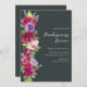 Erntedank Dinner Einladung mit einem rustikalen und eleganten Design. Der Hintergrund ist dunkelgrau und mit den im Aquarell gehaltenen Herbstgebälk-Blume, den getrockneten Blätter und den warmen Farbtönen der Blumen geschmückt. Der Text lädt die Gäste zu einem Erntedank Dinner mit Veranstaltungsdetails unten ein. Die Stimmung ist gemütlich, vom Bauernhof inspiriert und perfekt für Ansammlungen im Herbst. Die Rückseite dieser Karte ist ein braunes kariertes Muster. CADE Design © Sie können mit Ihren Namen und Text personalisieren. Sie können Textfarbe und Schriftart-Stil ändern, indem Sie die weitere Option anpassen. BITTE BEACHTEN SIE: Die online angezeigten Farben können leicht vom aktuellen Produkt abweichen.