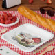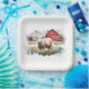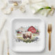 Niedliche Aquarellschaf auf einem Bauernhof mit roter Scheune.