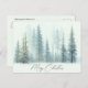 Diese wunderschöne, pastellfarbene Weihnachtskarte besticht durch eine schneebedeckte Waldlandschaft mit mächtigen Kiefernbäumen. Die sanften, gedämpften Farben und die zarten Pinselstriche schaffen eine warme und einladende Atmosphäre, perfekt für die Ferienzeit. Sie können den inneren Gruß bearbeiten, Ihren Namen hinzufügen.