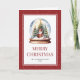 Aquarell Rot Frohe Weihnachtskarte mit Weihnachtsmann in einer Schneekugel. Personalisieren Sie diese verschneiten roten Urlaubskarten einfach mit Ihrem Familiennamen und Text.