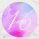 Berufliche abstrakte minimalistische Aquarellbilder in Regenbogenfarben. Die Farbtöne sind lila, rosa, rot, orange, gelb, grün und blau, alles in hellen Pastelltönen. Sweet 16 geschrieben mit trendy Typografie Kalligraphie Skript.