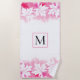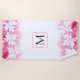Modernes, rosafarbenes Ahornblatt mit Wasserfarbenwäsche und monogramm Badetuch. Es zeigt einen Rahmen mit Blätter aus weißem Ahorn auf rosa Aquarellwäsche und Ihr Monogramm in einem Rahmen mit Kontur in der Mitte.