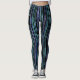 Diese schwarzen Leggings sind mit einem flachenden Muster von dünnen, wasserfarbenen Streifen in blau, grün, lila und türkis gehalten.