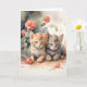 Adorable orange und graue Kätzchen mit Tischtennis schielten sich zusammen, umgeben von hübschen Blume. Blank Grußkarte zum Geburtstag, Jubiläum, neues Baby, danke, Beileid, etc.