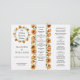 Dreifach gefaltetes Hochzeitsprogramm mit Aquarellorange-Tulpen, auf der Rückseite der Karte ist ein optionaler Zusatz zum Blumenkranz. Bitte beachten Sie: Eine Änderung des Papiertyps kann das Falten des Programms erschweren.