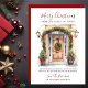 Die weiße Weihnachtskarte mit einer festlich dekorierten Haustür mit Kiefernbäumen, Kranken, Kiefern und roten Bögen eignet sich hervorragend, um Ihre Freunde und Familie zu empfangen. Die Nachricht ist anpassbar und die Vorlagen sind sehr einfach zu bedienen. In Sekunden können Sie Ihre wunderbaren Weihnachtskarten sehen.