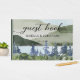 Individuell gestaltetes Design mit rustikaler, grüner Wasserfarbe, See- und nebeliger Hügelkulisse.