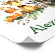 Watercolor Woodland Tiere Zimmer Poster Print. Zu den Kleinkindern zählen Bären mit grünem Bow, Hirsch, Elch, Raccoon, Kaninchen, Fox und Owl auf Eukalyptus-Blätter und Waldpflanzen. Name hinzufügen.