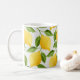 Von Hand gezeichnetes Aquarellzitronenmuster auf beige Hintergrund. Botanische Illustration. Saftige und frische Frucht. Eleganter Entwurf. Reizendes und stilvolles Muster.