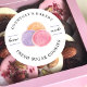 Stilvolle Kekse Sticker-Design mit Aquarellpinke, lila und cremefarbene Cookies Grafik, Serif-Schriftartes und ein einfaches Design. Eine großartige Möglichkeit, Ihre Zucker-Kekse mit Liebe-Aufklebern nach Maß zu personalisieren.