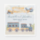 Diese kuscheligen Baby Duschnapkins sind mit einer charmanten Aquarellszene ausgestattet. Über den unteren Teil wird ein blauer und gelber Choo-Zug gedruckt, über dem zwei niedliche Flugzeuge im blauen Himmel fliegen. Die Flugzeug tragen jeweils ein Banner, um die Babydusche anzukündigen. Der Name der Eltern und das Datum der Veranstaltung werden in der Mitte gedruckt.
