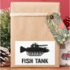 Der Körper und der Kopf eines Fisches mit dem Drehkopf, den Gewehren und den Bahnen eines gepanzerten Behälters. Ein Aquarium!