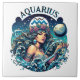 A fun horoscope sign Aquarius ceramic tile with a pretty celestial illustration of a water bearer woman in front of stars and a full moon.