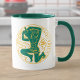 Aquarius-Zeichen des Zodiaks in grün und gelb auf einer zweifarbigen Tasse Kaffee.